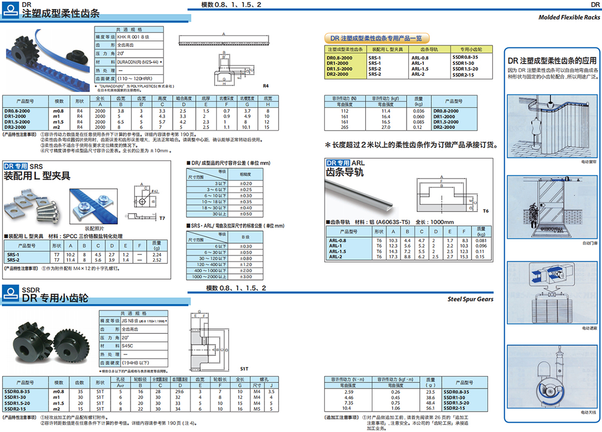 〔注 1〕 上表的產(chǎn)品型號(hào)中的 (F) 表示齒條的兩個(gè)端面經(jīng)過加工。它們可以連結(jié)起來 , 達(dá)到所需的使用長度。(D) 及 (K) 表示齒條加工了裝配孔 , 使組裝更加方便。